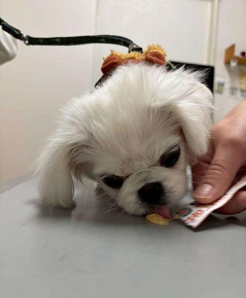 診察室に入り、おやつをもらいます♪