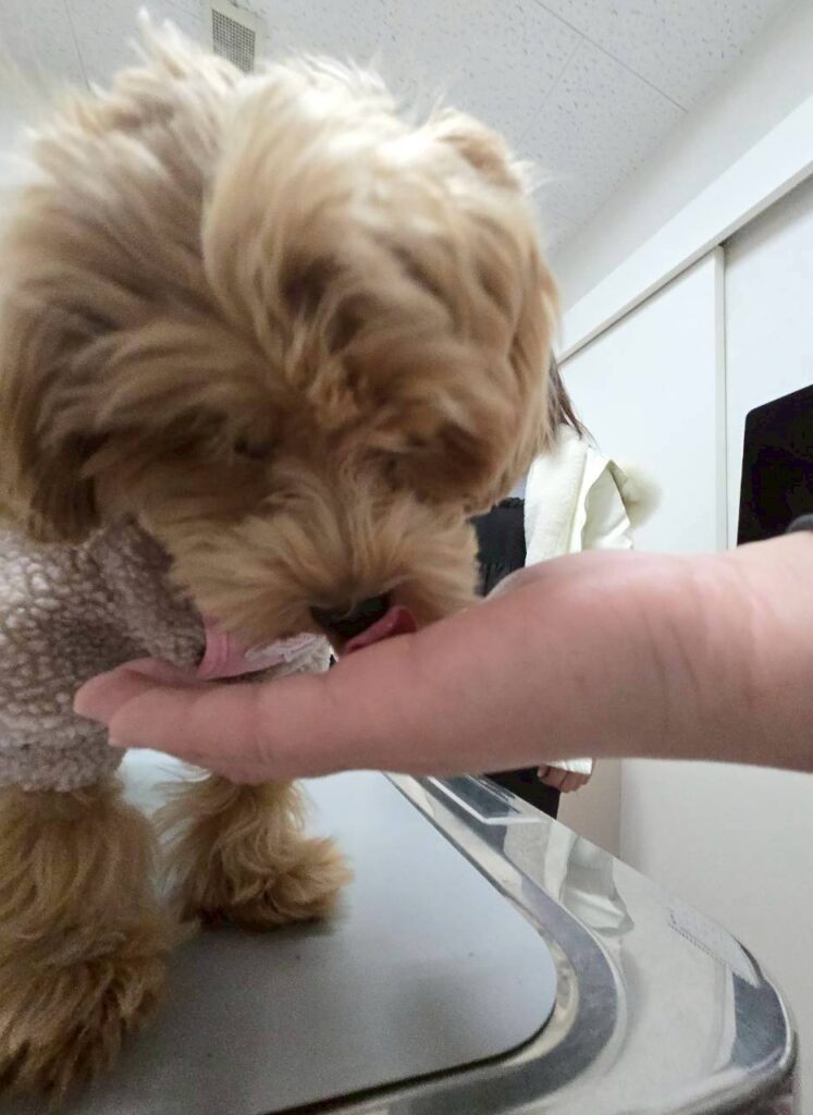 診察室ではおやつを食べながら